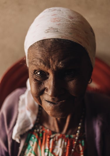 Joana chegou pequena na comunidade de Conceição das Crioulas, ainda “menininha véia”, como ela mesma diz. Tinha dois anos e vinha de Belém do São Francisco (PE). Era a caçula de sete irmãos, mas só restou ela: “Só tem eu de encomenda.” Mulher negra, de 74 anos, com aparência miúda, mas presença profunda. Mãe Joana guarda, em sua biografia, momentos difíceis, mas que não lhe tiraram a alegria e o gosto pela boa conversa. Pelos desafios da vida, passou desdobrável. Hoje, Joana já não benze com a frequência de antes. Um rezador lhe recomendou cuidar das energias, que “fica tudo na gente”. Mas o saber continua nela. Joana não se impõe, mas quem chega perto sente. Ela é dessas que ensinam sem pretensão. E se a gente prestar atenção, aprende a benzer só de olhar, como ela fez um dia.