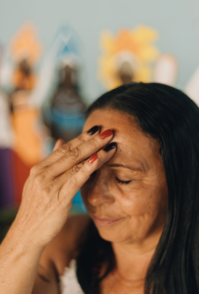 A casa é terreiro. E o terreiro, casa. Não há portão que se feche pra quem chega precisando. Basta chegar. “Num tem horário. É a hora que a pessoa chegar precisando rezar.” Basta o corpo doente, o peito apertado, a criança chorosa e ela entende o chamado. Cearense de Acopiara, criada na Bahia, Mãe Neide chegou em Petrolina (PE) já com três filhos. Tem 47 anos e carrega nos ombros uma trajetória espiritual que começou cedo. “Desde os 7 anos de idade que eu via coisa. Eu era chamada de louca, de doida, que ninguém acreditava, né? Que ninguém acredita em criança”. Via o que os outros não viam, sentia o que os outros não entendiam. Chamaram de doida, como costumam chamar quem tem os sentidos abertos. Com o tempo, entendeu que o que parecia peso era chamado. E aceitou.